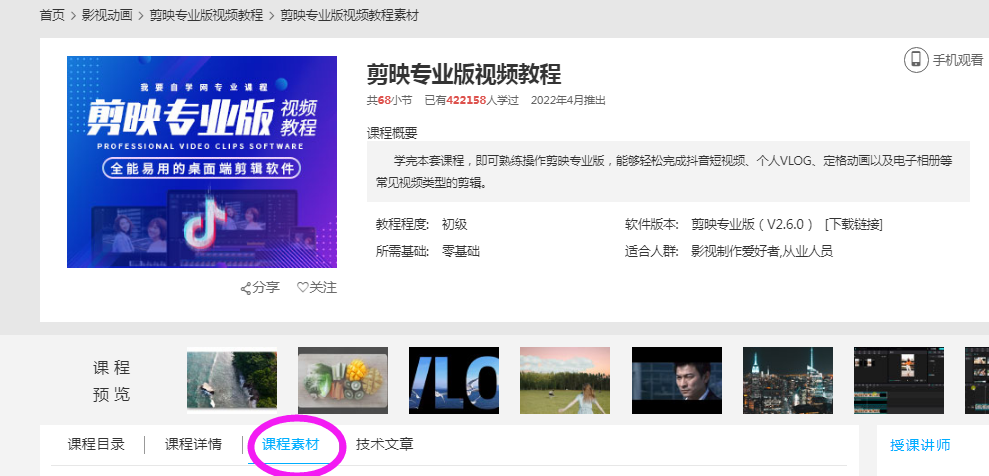 @ T929519sj 您好,课程素材在电脑网页的视频左下方和课程目录旁边都有提供下载地址的