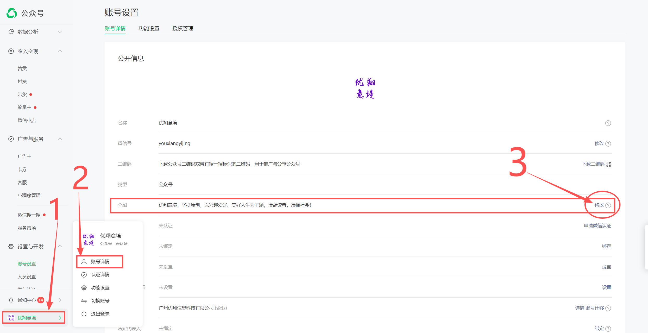 李老师,您好!在听您讲3-3公众号介绍中,关于公众号介绍修改问题,不知道从哪进行修改?谢谢![握手]