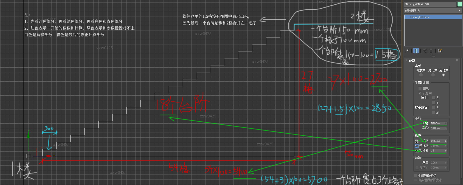 @ 画风风哇 19个台阶,软件画出来是少一个的,显示18个,因为最后一个台阶和上一层的楼板合在一起了
