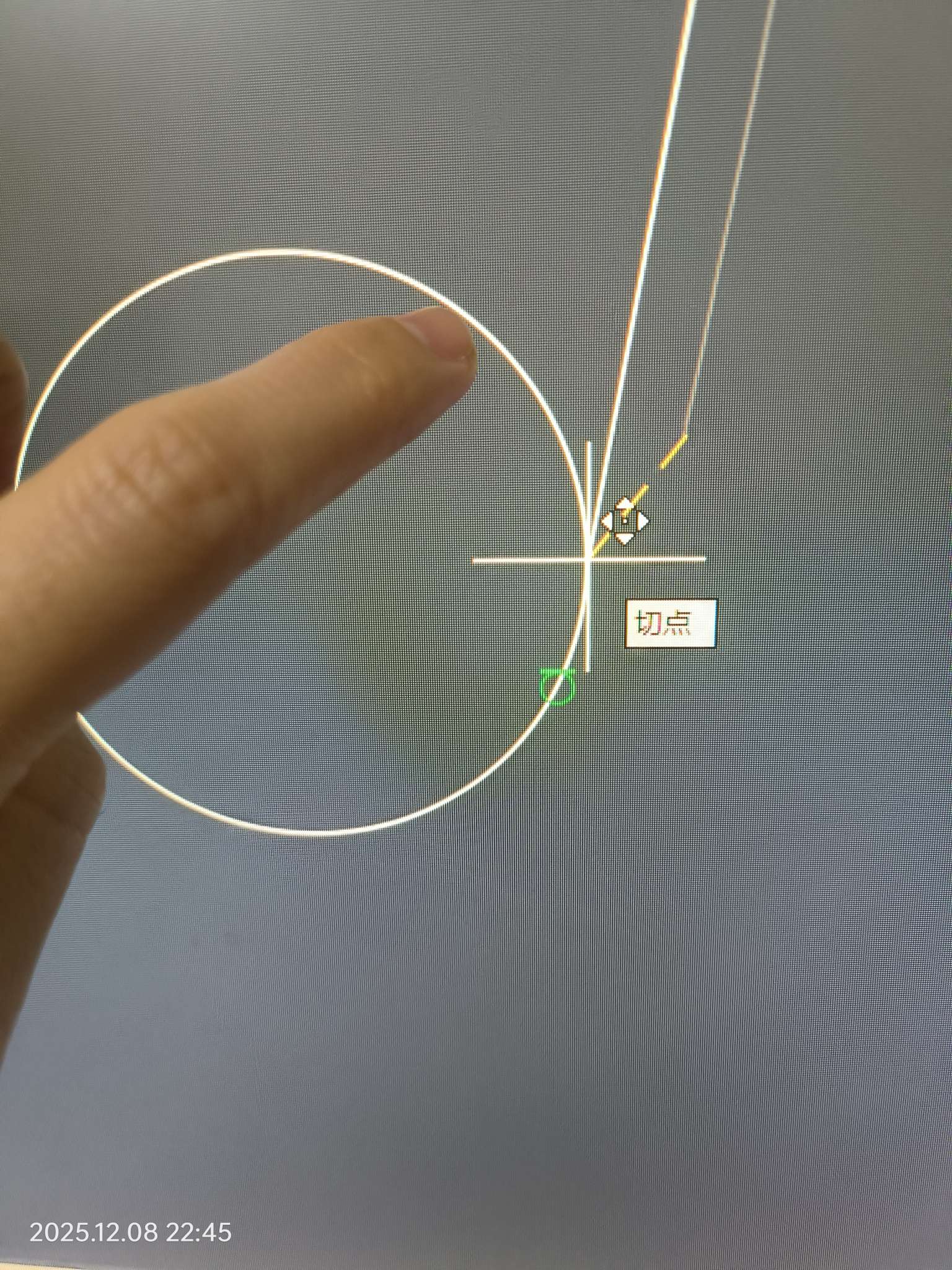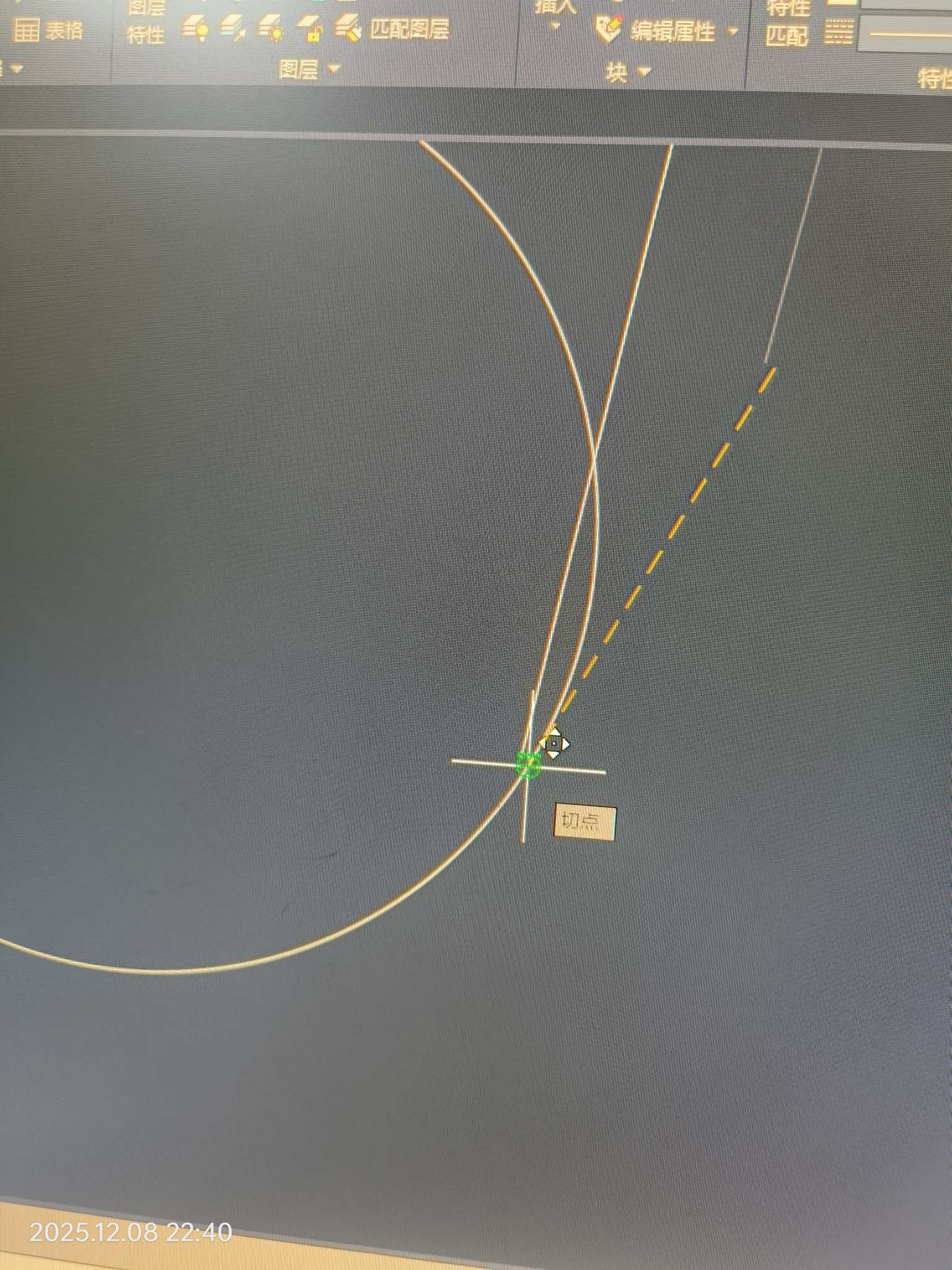应该在我现在放这个位置,但是整个圆只有我指那个位置和现在出现的那个位置有切点 ,怎么接