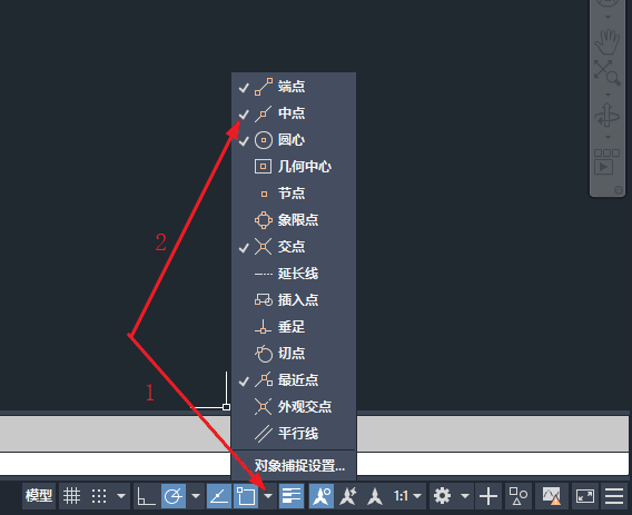 @ qq384877797 状态栏点击对象捕捉右侧的小三角,在捕捉类型里勾选中点。操作视频《2-8 绘图辅助工具-对象捕捉(上) 》https://www.51zxw.net/Show.aspx?cid=1347&id=151302 |