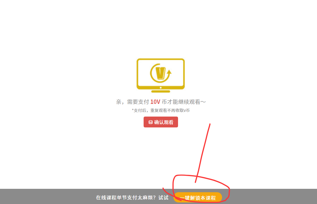 @ WXj8bzy5fb0 您好,可以在电脑网页打开付费视频内容页面,有提示整个课程的收费,及一键解锁功能。
