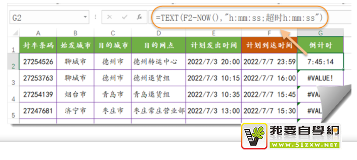 默认情况下,Excel是不支持负时间或者是负日期的,所以当F列的时间早于系统当前时间时,二者相减为负数,公式结果就出现问题了。