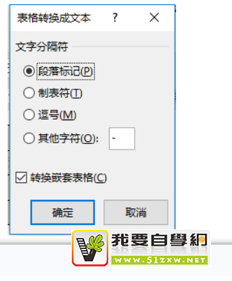 (4)选中左侧保留的表格,点击【布局】-【数据】-【转换为文本】按钮,在打开的对话框中直接单击“确定”按钮。
