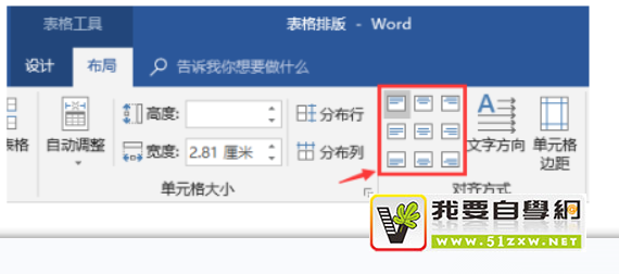 比如,我们想将表格中的文字调整到单元格的中间位置,只需选择表格或需要设置的单元格,点击【表格工具】-【布局】-【对齐方式】组,选择“水平居中”对齐方式即可。