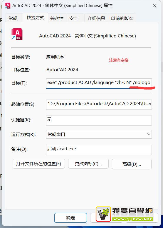二,在目标地址后面按空格,然后输入/nologo,注意需要有空格。