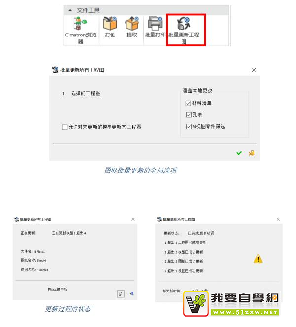 选定的每个图纸都会经历所有图纸的模型更新和视图重新生成的整个过程。更新后的图形将被保存。