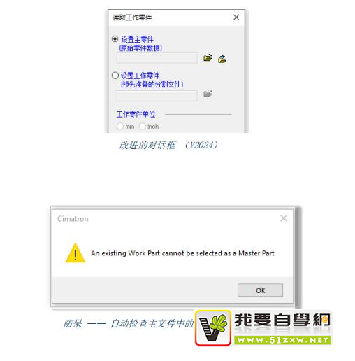 加载工作零件功能对话框已更改,能更好地传递每个选项的作用。