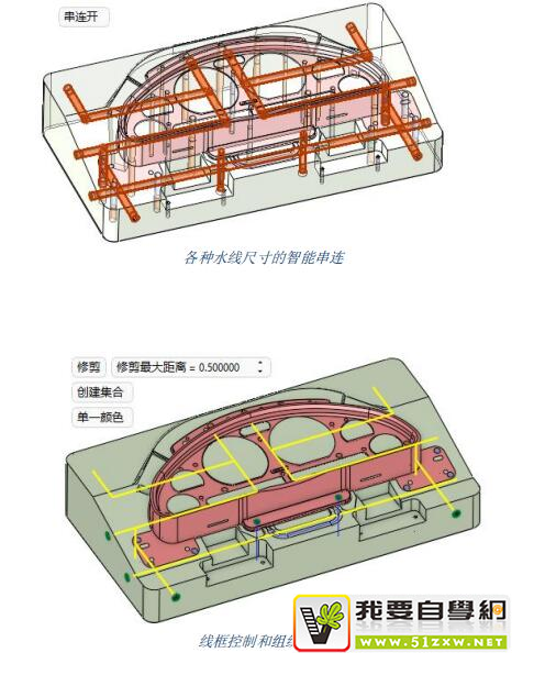 圆柱中心线是为考虑模具冷却回路开发的。中心线对于制作冷却名牌、工程图视图或输出到模流软件进行详细冷却分析都非常有用。