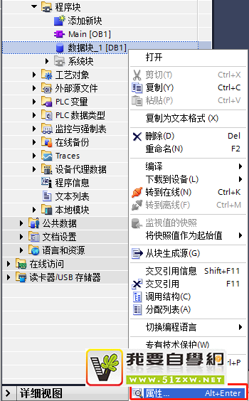 第一步:(选中DB数据块—鼠标右击属性)