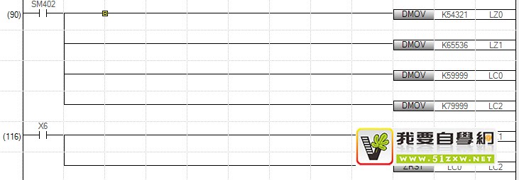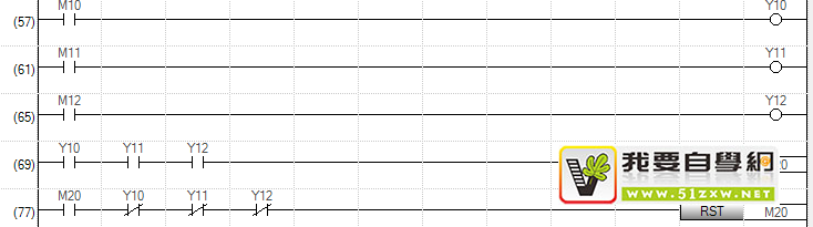 1、软元件的单独复位,可对位软元件或字软元件使用RST指令。