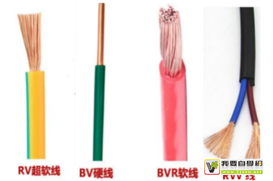 RV:材质软线,是更多股铜丝绞在一起的单芯线,一般常用自动化设备。