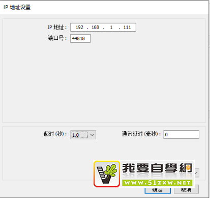 步骤六:设置PLC “IP地址”端口号默认,超时选择1.0秒