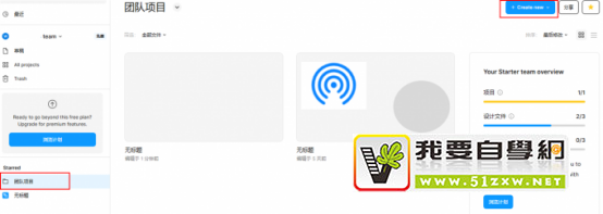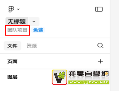 创建团队项目后,打开Figma的设计画板,如图2所示,在左侧的标题下方会显示“团队项目”字样。