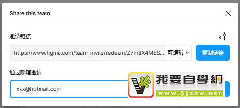在分享功能界面中,大家可通过发送邀请链接以及邮箱邀请两种方式添加团队成员。