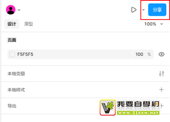 如果不想将项目设置为团队项目,可使用项目内分享功能代替。如图9所示,在设计项目中,点击设计面板右上角的“分享”按钮。