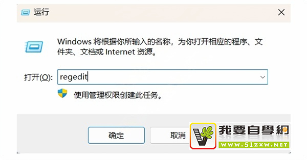 同时按住键盘上的win键+R键,打开【运行】对话框,输入regedit,单击【确定】按钮,如图运行窗口所示