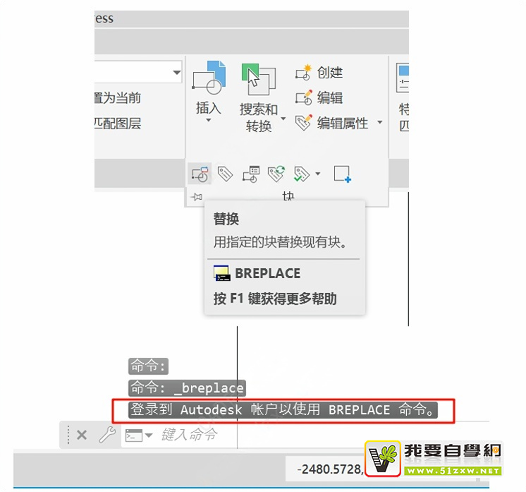 我们分享过各种批量替换图块的操作,都是插件实现的,而CAD自动的图块替换操作需要登录,如图: