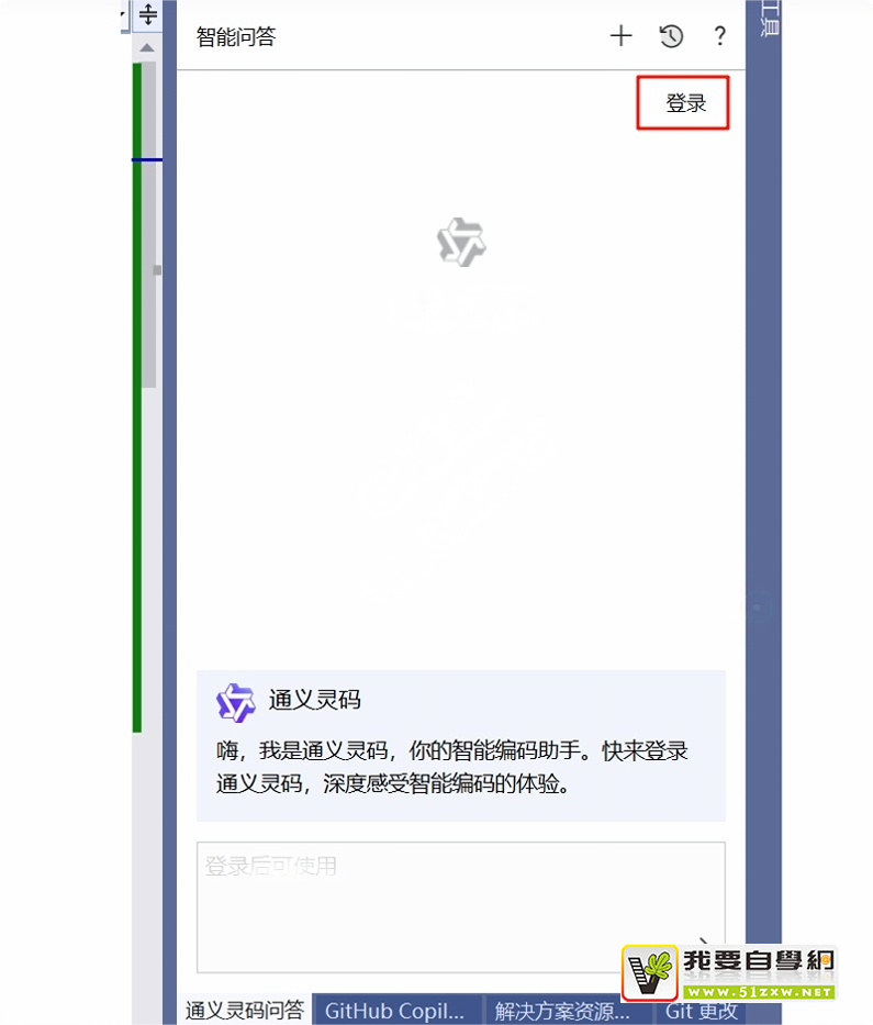 安装之后重启VS,打开后在右侧会有通义灵码,点击登录。