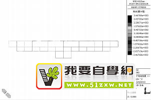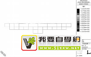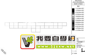 图 10,11 为 X 方向地震力作用的结构应力云图。在 X 方向地震力作用下,梁柱轴应力最大为(两边从外往内)第 4 跨梁柱外端节点处,最大值为 1.31MPa。各层柱剪力从外往内,不再呈现规律性变化,地下层1 边顶板柱上端剪应力最大值,为 0.25 MPa。在复杂应力条件下,最大组合应力云图如图 12 所示,最大组合应力值发生在中间四跨的梁柱节点处,其值为 3.47MPa。