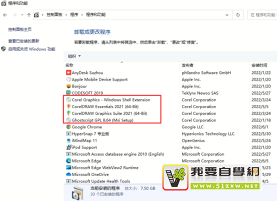 1、关闭当前安装页面,打开控制面板,卸载如图CorelDRAW相关程序