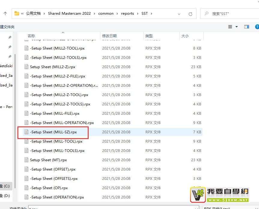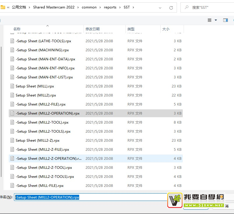 打开系统自带的-Setup Sheet (MILL-SZ).rpx