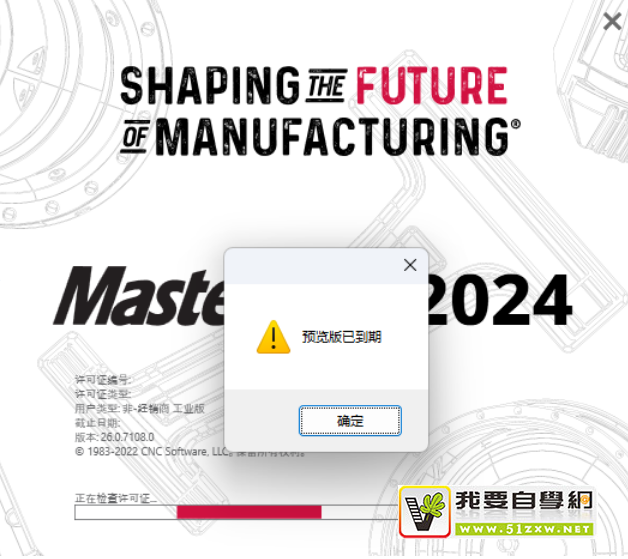 打开MasterCAM提示预览版已到期,这种问题很好解决,只要给软件打上补丁就可以了,下面提供mastercam每个版本的补丁下载地址。