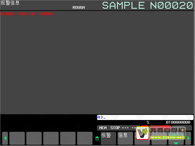 这是一个小伙伴咨询的问题,有台设备出现了宏程序报警,报警信息如下“MC0001 TOOL NO. ERROR!”,小伙伴之前遇到最多的宏程序报警号码都是以MC3001开头的,这次报警却是以MC0001开头的,不知道是什么原因。