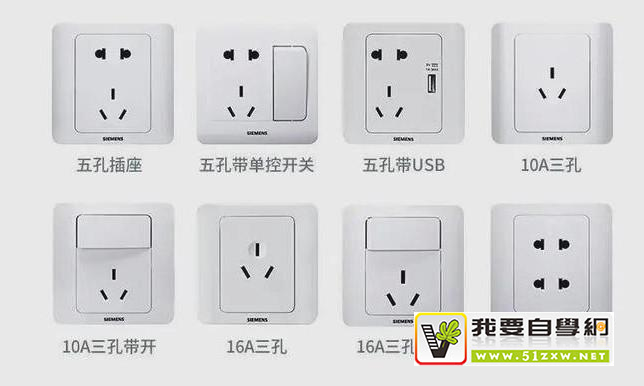 这里以最常见的86型插座为例,目前主流的插座有以下几种: