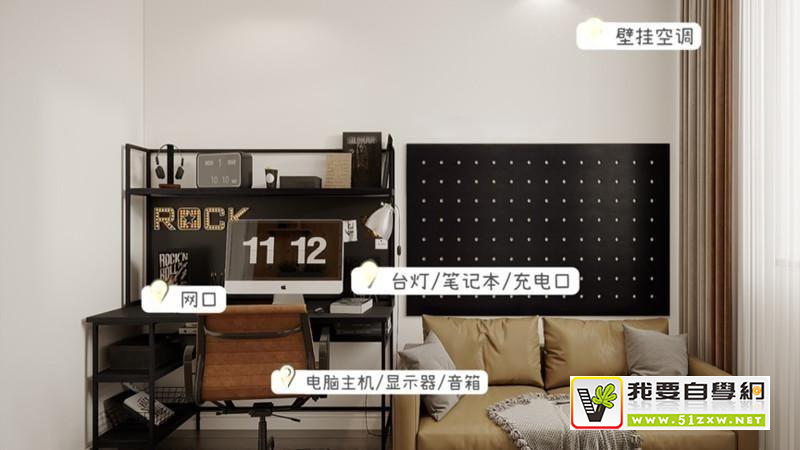 书房用来工作休闲用的书桌/电脑桌旁准备电脑主机、显示器、音箱以及打印机等办公设备的电源接口。