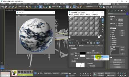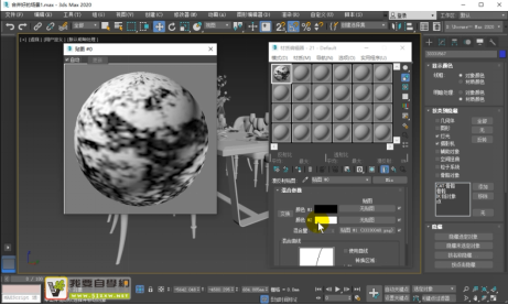 步骤2:选择餐椅背部,然后M打开材质编辑器,空白材质球Standard选择VrayMtl,漫反射里面添加混合材质。