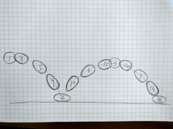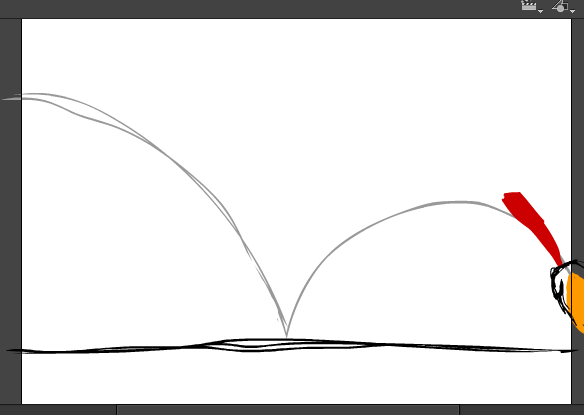 1,先绘制地面和抛物线的位置和高度,确定弹性动画的轨迹。