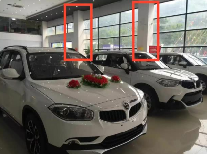 (图为事发酒店一层商铺,矩形框中为钢架柱所在位置)