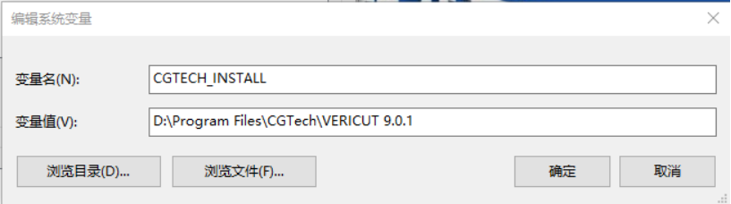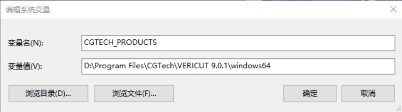 变量值:D:\Program Files\CGTech\VERICUT 9.0.1\windows64