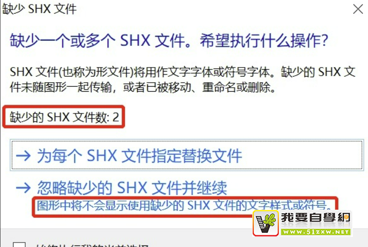 通常我们在学习工作过程中,会碰到图纸打开时缺少字体,例如这种情况。