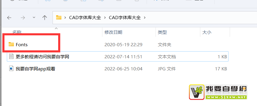 4)将刚才复制的Fonts文件夹,复制到autocad目录下。