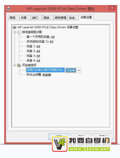 为了节省纸张,我们往往会将一张纸正面和反面都用上,这就是双面打印。有些打印机是支持自动双面打印的,首先在开始-设备和打印机中找到打印机驱动,右键选择打印机属性-设备设置-可安装选项,将双面打印单元选择已安装。(某些打印机驱动还有允许手动双面的选项,要选择已禁用)