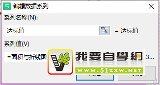 3.双击面积图形,点击【图表工具】-【选择数据】菜单,在对话框中点击【+】添加系列。系列名称为【销售额折线】,系列值选择【销售额】数据列,如下图所示。