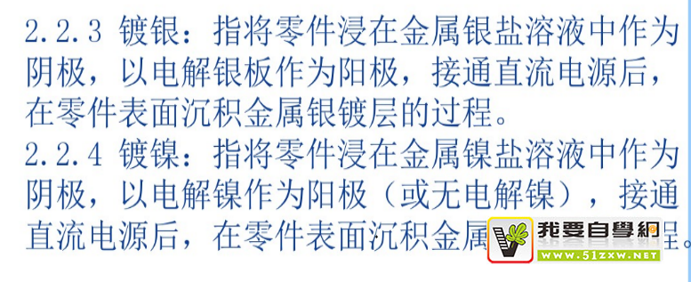 ③装饰性镀层:如Au、Ag以及Cu.孙仿金镀层、黑铬、黑镍镀层等;