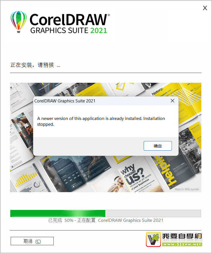 很多学员在学习CorelDRAW过程中,安装CorelDRAW时碰到A newer version of this application is already installed. Installationstopped.的提示错误,如下图所示,应该如何解决呢