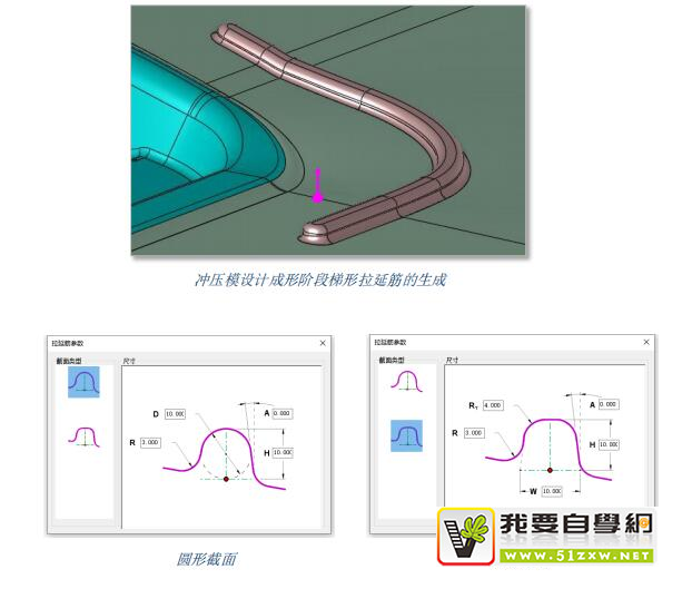 为冲压模制造商提供了一项新功能,可自动创建拉延筋。这是在成形阶段创建在合模面上的