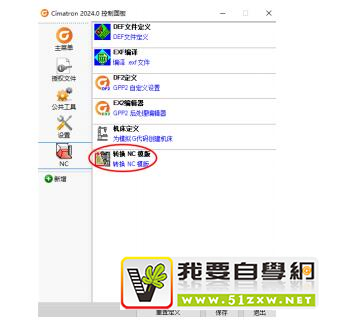 在 Cimatron 的控制面板的 NC 栏启动“转换 NC 模板”程序