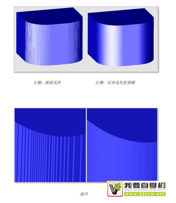 该功能与“曲面毛坯”相似,但其使用网格面进行逼近,因此更加精确。
