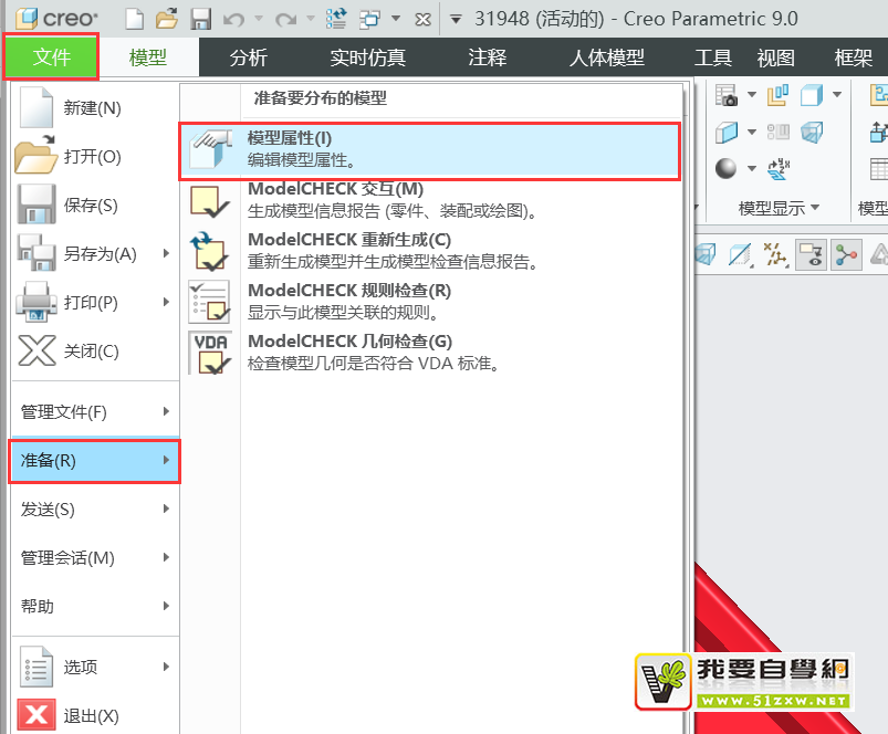 第二步:选择“文件”-“准备”-“模型属性”,如下图所示。