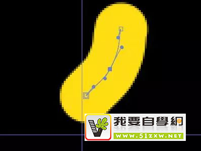 选择路径,在40位置创建帧,拖一根竖参考线到右大腿顶点位置。接下来是对右大腿做逐帧动画:主要使路径的锚点位置和弯度的调节,下图是41,42,43,44,45,46,47,48,49,50,51,52,53,54,55位置的参考图,