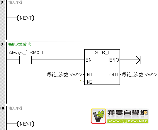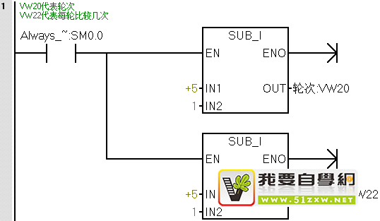 使用外循环FOR,循环次数存储在VW24中,循环的轮次次数为4(VW20)