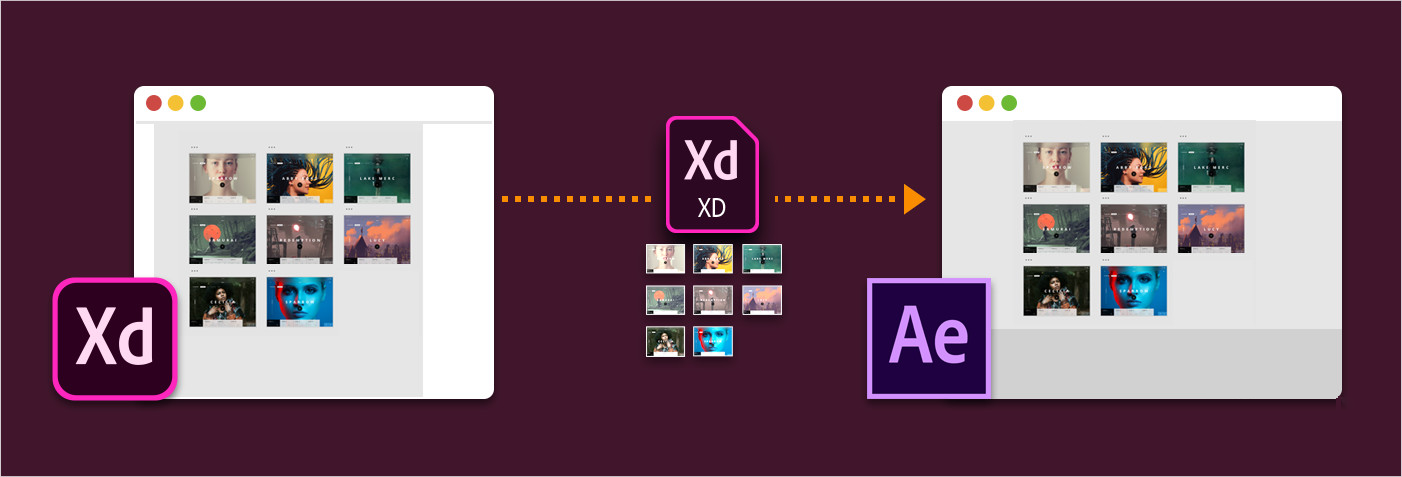 从 Flash 破壳而出的 Animate 终究逃不过 Flash 的命运,可就岌岌可危的使用空间,AE 继续强攻,支持 .fla 文件分层导入。与 Animate 的悲惨命运形成鲜明反差的 XD,在 Adobe 爸爸的扶持下如浴春风了。同样是将图层和直接导入 AE (直接选择文件-导出-AE即可),但作为抗衡 Sketch 为目的的天赋设定,动效这个回合总算让 XD 找回了点儿自信。