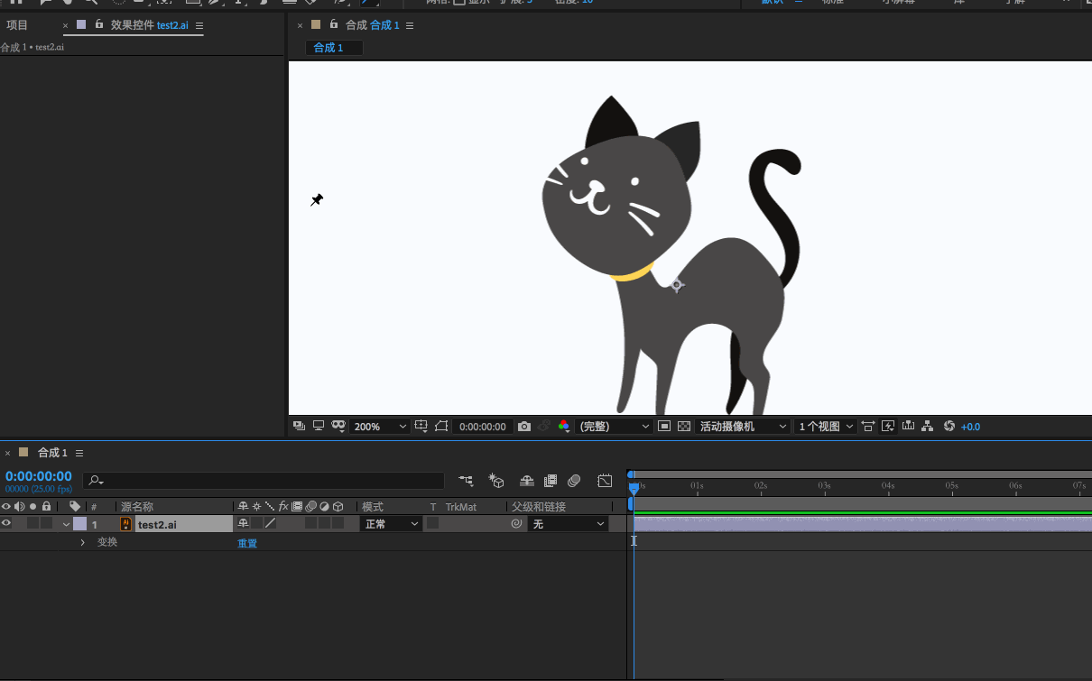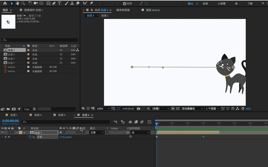 例如下图走路的小猫咪,当给它创建保护开场后,我们对它进行时间轴的拉伸,保护区域不变,其他区域因为拉伸的原因,时间轴拖长,猫咪走路变慢。