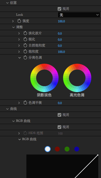新的曲线调整工具,选择颜色分级简单明了。两个轴清晰呈现 色相到色相 和 色相到亮度 的值。