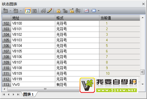 从VW100开始的100字分别为VW100-VW298写入1-100数字。